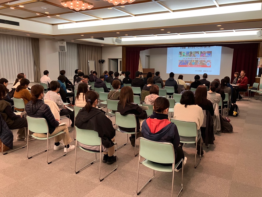 今回の研修内容は、「JICAとJICA四国の事業について」JICA四国所長 田村様から、JICAやJICA四国の概要や事業事例、そして昨年9月に締結した「JICA四国×高知大学×本山町による三者連携覚書」に伴う、これまでの取り組みや、これから取り組んで行くことなどについて説明していただきました。
